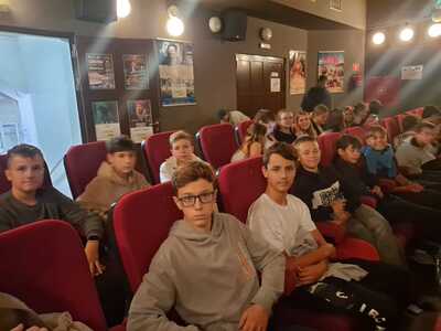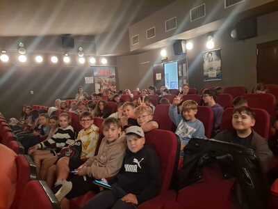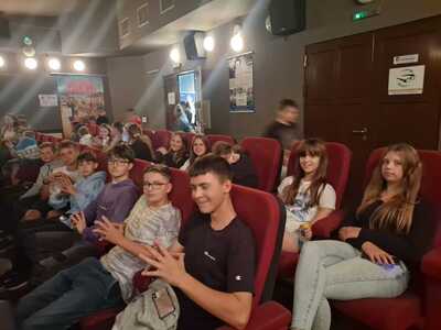 20 września br. uczniowie klas 5c, 5d i 7e obejrzeli w kinie "Fregata" film pt. "O psie, który jeździł koleją". Projekcja odbyła się w ramach pokazów Gdynskiwgo Festiwalu Filmowego. Dodatkową atrakcją było spotkanie z reżyserką filmu p. Magdaleną Nieć i odtwórczynią głównej roli Lilianą Zajbert. Uczniowie z chęcią zadawali pytania dotyczące powstawania filmu, trudnych scen czy pracy ze zwierzętami. Była okazja, by zrobić sobie wspólne zdjęcia z nastoletnią aktorką. Na zakończenie spotkania każda grupa uczestnicząca w projekcji otrzymała od twórców plakat z autografami artystów.