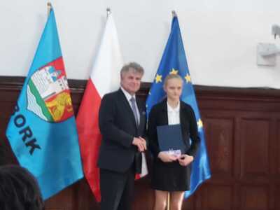 Nasza uczennica, Kinga Rucińska (kl. 8c) otrzymała nagrodę główną w nauce w kategorii klas VII-VIII. Laureatka poprzedni rok szkolny ukończyła ze średnią 5,78. Lubi geografię, matematykę oraz ortografię. Brała udział w wielu konkursach, zajmując czołowe miejsca. Reprezentowała Lębork w konkursie i na gali laureatów w Ogólnopolskim Konkursie Historycznym "Losy żołnierza i dzieje oręża polskiego" w Warszawie.
