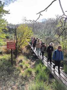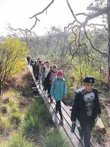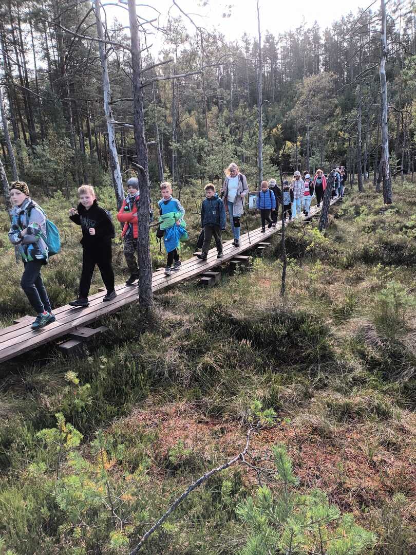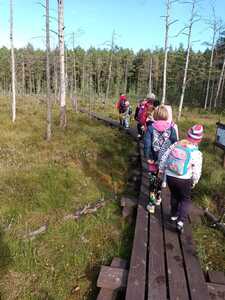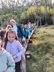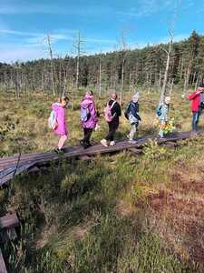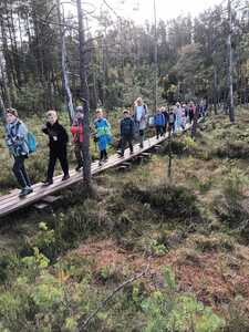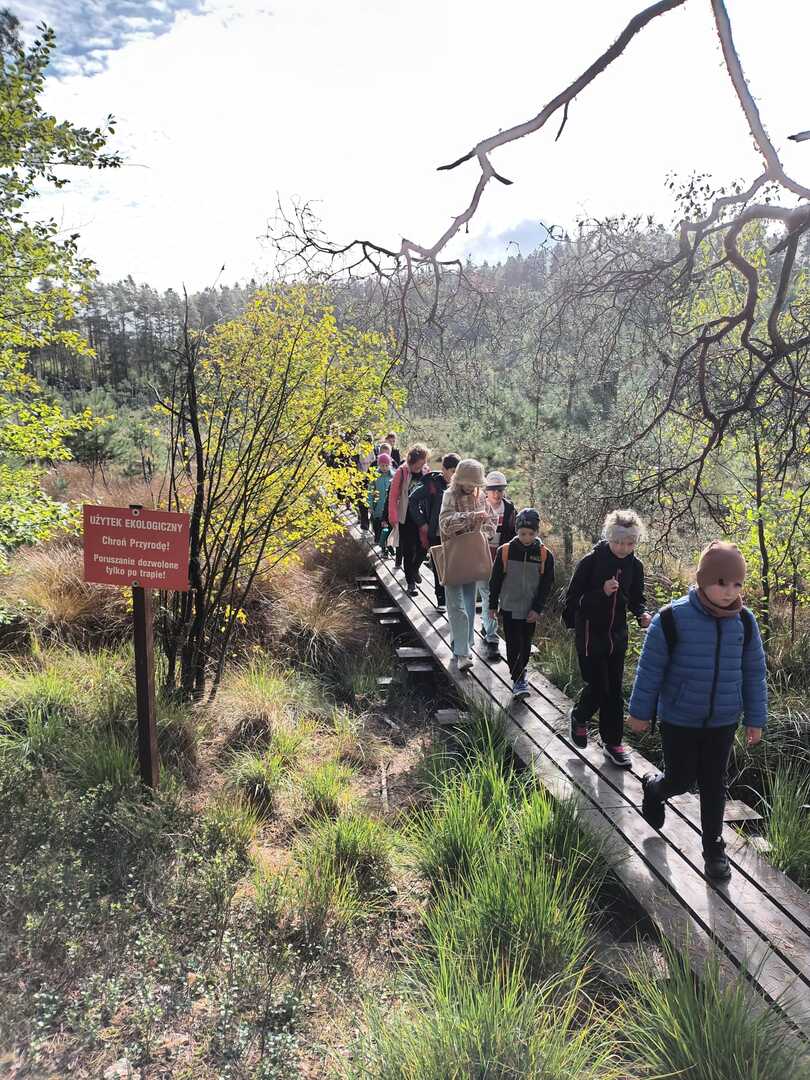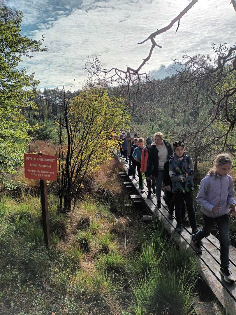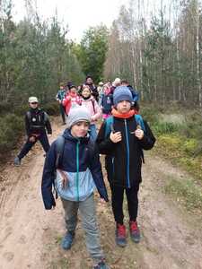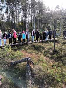 XXV Rajd "Liścia Dębu". Przy sprzyjającej pogodzie przeszliśmy 10km przepiękną ścieżką przyrodniczą oraz edukacyjną w nadleśnictwie Łupawa w pobliżu miejscowości Karwno. Ścieżka biegnie przez obszar leśny między jeziorami Karwińskim i Kozińskim. Podczas wędrówki mieliśmy okazję podziwiać naturalne procesy zachodzące w przyrodzie, użytki ekologiczne i okazałe pomniki przyrody. Ciekawym miejscem, które odwiedziliśmy podczas wędrówki, był tzw. „Rosiczkowy Trap". Jest to drewniana kładka umiejscowiona na powierzchni torfowiska wysokiego, o dł. około 250 m. Trap jest uzupełnieniem tematyki ścieżki edukacyjnej "Karweńskie Uroczyska" o faunę i florę torfowisk, bagien i terenów podmokłych. Można z bliska poznać i zobaczyć niedostępne rośliny i zwierzęta. Na trasie rozmieszczono 10 tablic edukacyjnych, z którymi zapoznali się nasi młodzi turyści. Na zakończenie rajdu odbył się konkurs wiedzy na temat tego bardzo urokliwego miejsca.