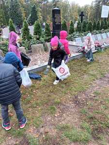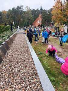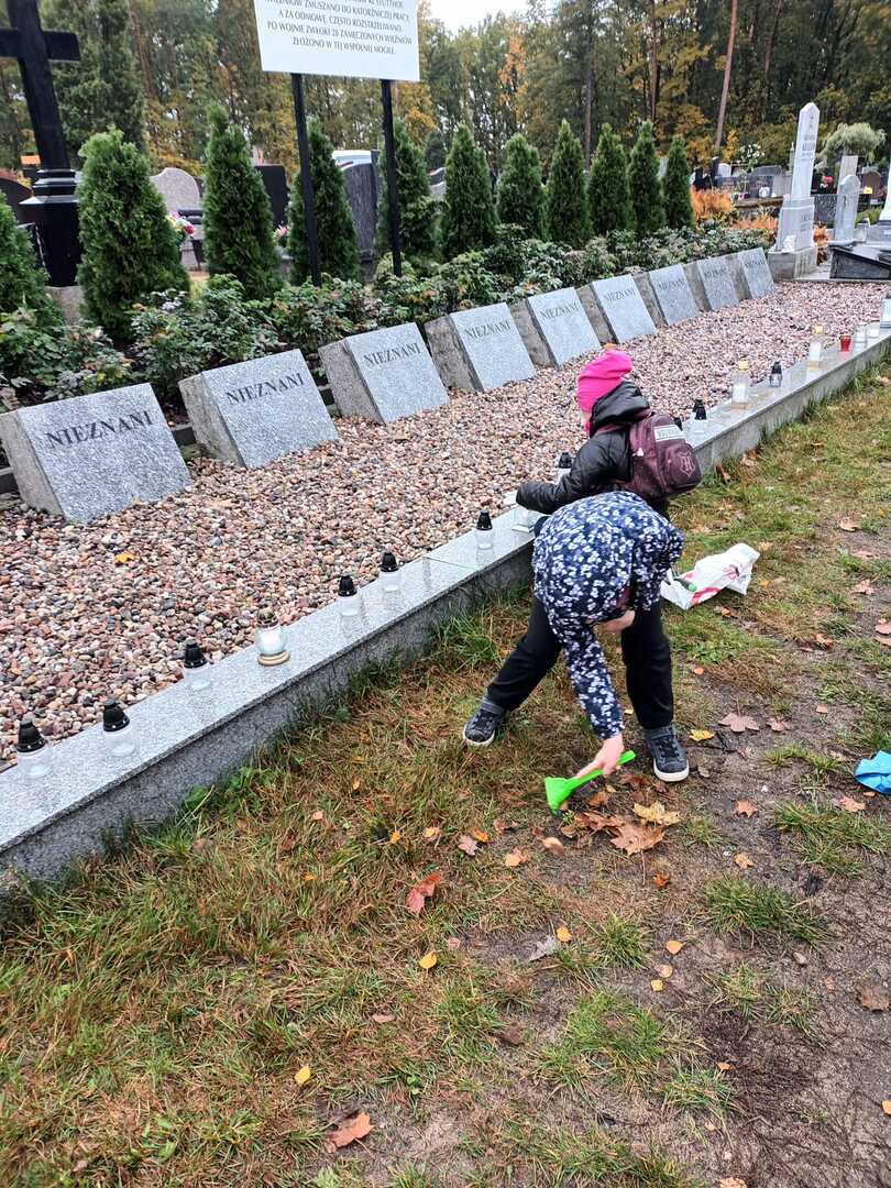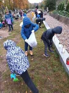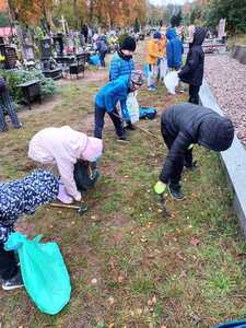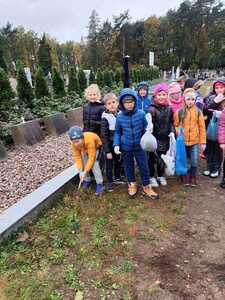 Klasa II A - wycieczka na Cmentarz Parafialny w Lęborku - uczczenie pamięci zmarłych. Oddanie hołdu żołnierzom, którzy zginęli w walce o nasz kraj oraz zapalenie zniczy na ich grobach. Wdrażanie uczniów do właściwego zachowania w miejscu pamięci oraz okazywania szacunku osobom, które od nas odeszły.