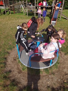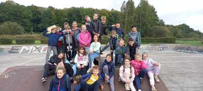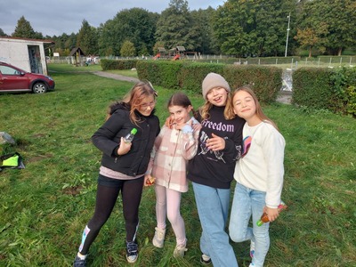 Dnia 12.10. klasy 4b oraz 4c wybrały się na wycieczkę integracyjną do Parku Chrobrego w Lęborku. Dzień pełen wrażeń rozpoczęła gra terenowa „Lęborskie czarki”, w którą dzieci, dzięki współpracy szkoły z Biblioteką Miejską w Lęborku, miały przyjemność zagrać w grupach. Każda grupa nadała sobie nazwę i z ogromnym zaangażowaniem szukała w Parku Chrobrego czarków, małych skrzatów. Dzieci wykonywały przy tym przeróżne zadania. Następnie wszyscy uczestnicy wycieczki spotkali się na terenie tzw. Skate Parku, gdzie chętnie spędzali czas na zabawie, grach i oczywiście zajadaniu kiełbasek z ogniska :)