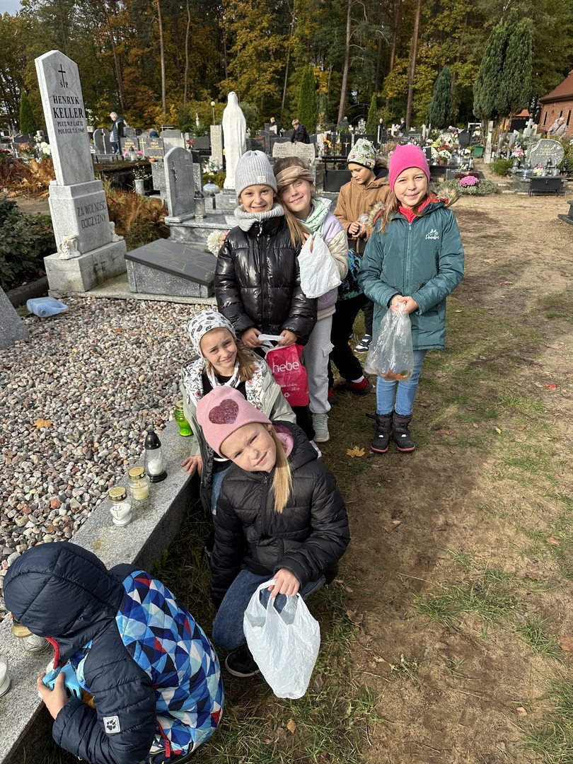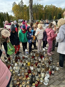 Wyrazem pamięci o bliskich jest zapalenie zniczy, przynoszenie kwiatów. 1 listopada cmentarz jest pełen światła, zapachu. Można poczuć, że o nikim nie zapomniano. Jest to czas, kiedy warto pamiętać i odwiedzić miejsca pamięci osób, które walczyły za Polskę. Drugoklasiści włączyli się do udziału w akcji Ministerstwa Edukacji i Nauki „Szkoła pamięta”. Wybrali się na lęborski cmentarz, gdzie uprzątnęli mogiły zamordowanych więźniów filii obozu Stutthof oraz zapalili znicze. W szkole podczas zajęć wyruszyli w podróż pełną zadumy i ciekawostek. Uczniowie klasy 2 c obejrzeli film edukacyjny o cmentarzach na świecie, poznali tradycje związane z dniem Wszystkich Świętych. To była jedna z ważniejszych lekcji wychowania rodzinnego, obywatelskiego i patriotycznego, która z pewnością pozostanie w pamięci dzieci.