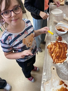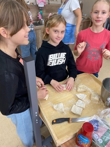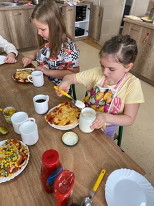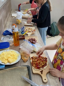 W piątek 27.10.23 r. na kolejnych zajęciach kulinarnych robiliśmy pizzę. Każdy uczestnik przyniósł ulubione dodatki i otrzymał porcję ciasta, z którego przygotował pizzę. Po upieczeniu oczywiście była degustacja, wszystkim bardzo smakowało, a zapach pieczonej pizzy rozchodził się daleko po szkole.