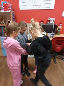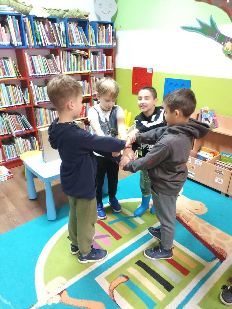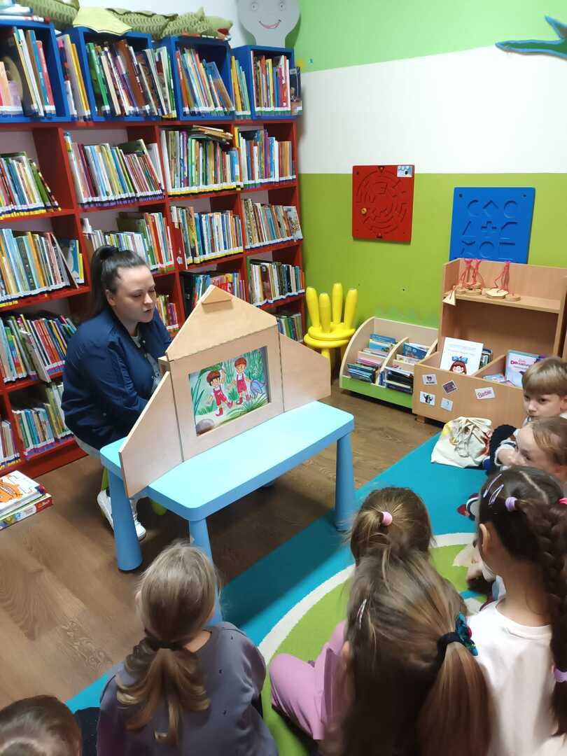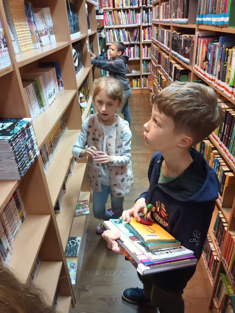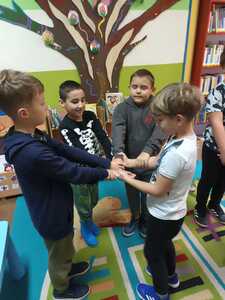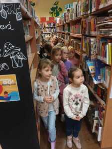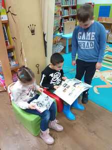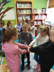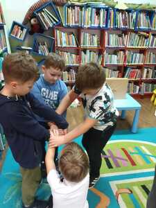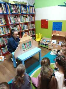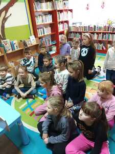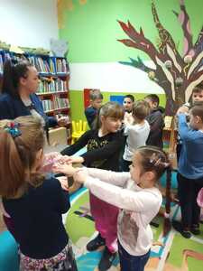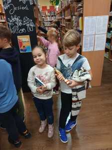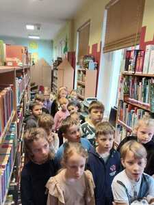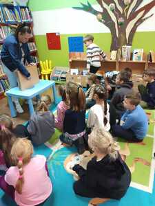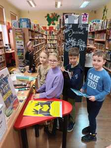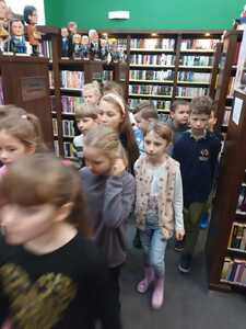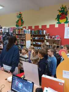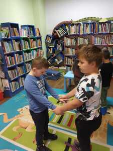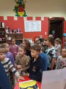 “Tropem lęborskich czarków Emilii Hinc. Poznaj historię ukrytą w Parku Chrobrego” - to tytuł warsztatów, w których uczestniczyli uczniowie klasy II A. Organizatorem zajęć była Miejska Biblioteka Publiczna im. Jarosława Iwaszkiewicza w Lęborku. Uczniowie zapoznali się z fragmentem książki o lęborskich czarkach przedstawionej w formie teatrzyku kamishibai, a następnie uczestniczyli w zabawach związanych z tematem spotkania. Wizyta była też okazją do ponownego przejrzenia zbiorów lęborskiej biblioteki i przypomnienia zasad korzystania z jej zasobów.