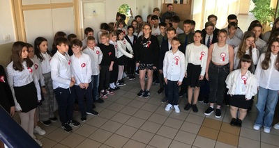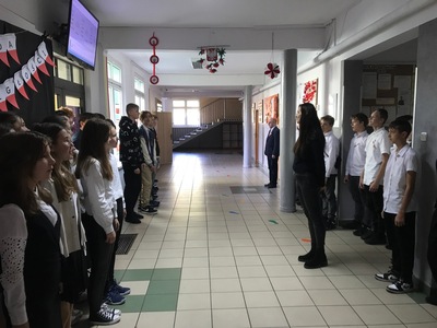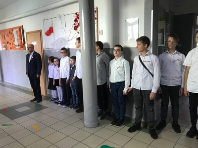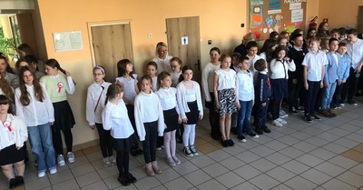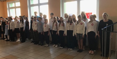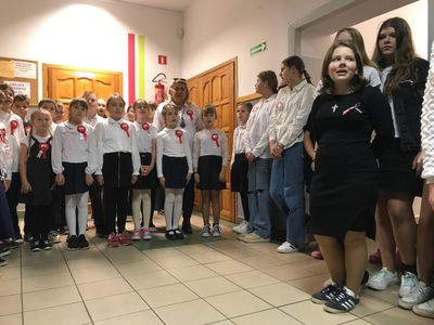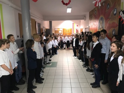 "Szkoła do hymnu" Nasza szkoła, podobnie jak w latach ubiegłych, wzięła udział w akcji "Szkoła do hymnu". O symbolicznej godzinie 11:11 wszyscy uczniowie zebrali się na szkolnych korytarzach, by odśpiewać "Mazurek Dąbrowskiego". Galeria zdjęć Powiązane wiadomości Lęborskie czarki ŚWIETLICOWY DZIEŃ KUNDELKA Wyniki konkursu „Wokół Niepodległości” "Szkoła do hymnu" Dzień Niepodległości w kl. 1-2 Dzień Postaci z Bajek Drukuj Udostępnij Data dodania: 10.11.2023 Wyświetlono: 197 Aktualności