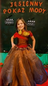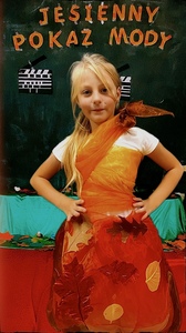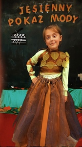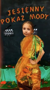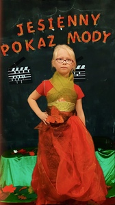 W ubiegłym tygodniu dziewczynki wcieliły się w role projektantek mody i z pomocą dostępnych materiałów miały za zadanie stworzyć jak najciekawsze stroje inspirowane jesienią. Dominowały kreacje w kolorze - żółtym, czerwonym oraz brązowym. Do ozdobienia wykorzystano również liście oraz dary jesieni. Dzieci prezentujące najnowszą kolekcje jesiennej mody z przyjemnością spacerowały po wybiegu oraz pozowały do zdjęć.