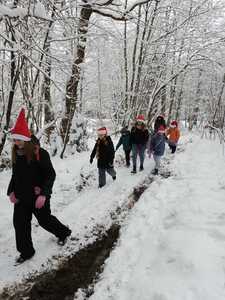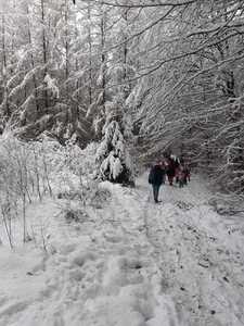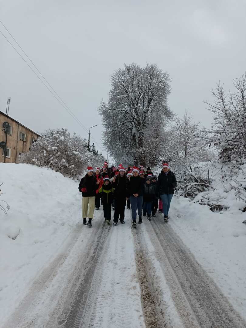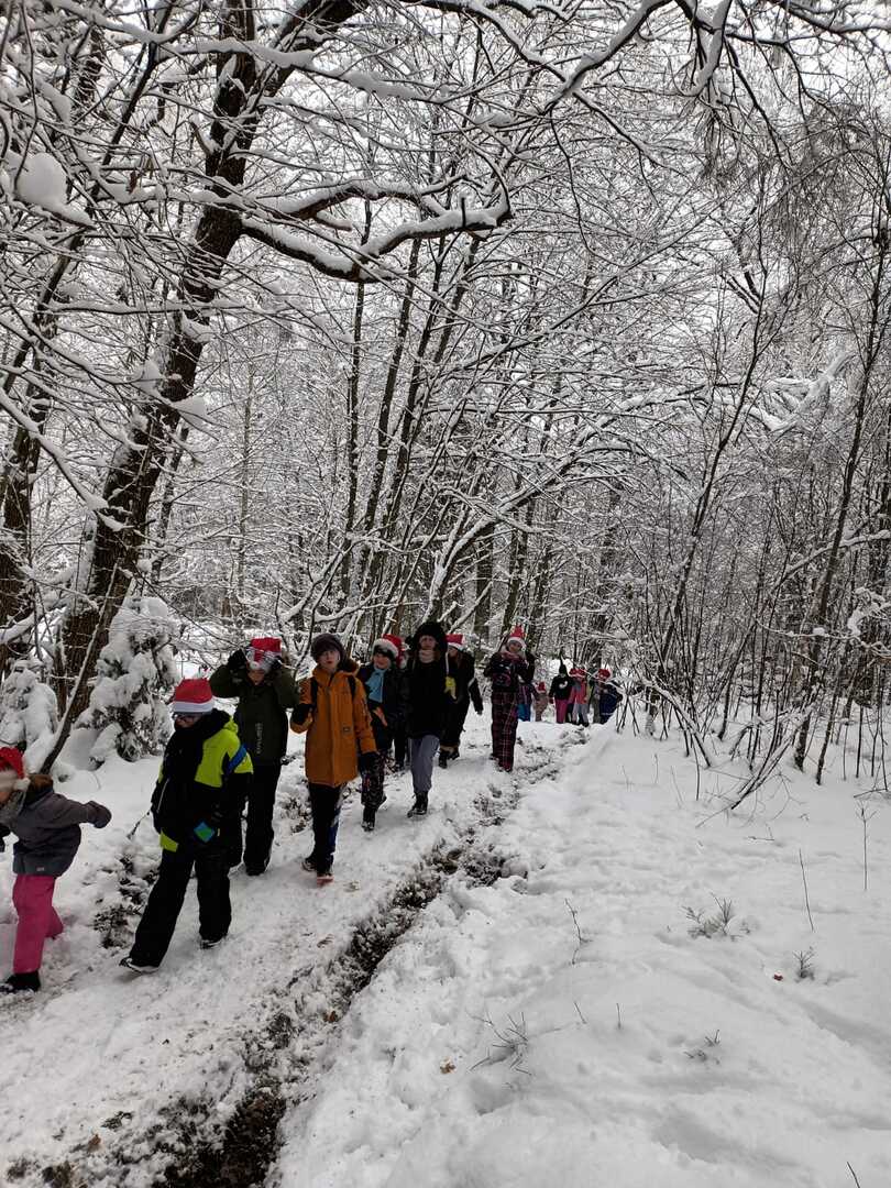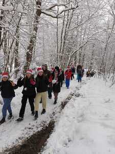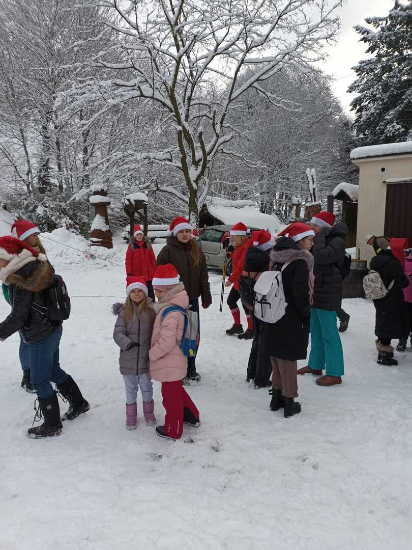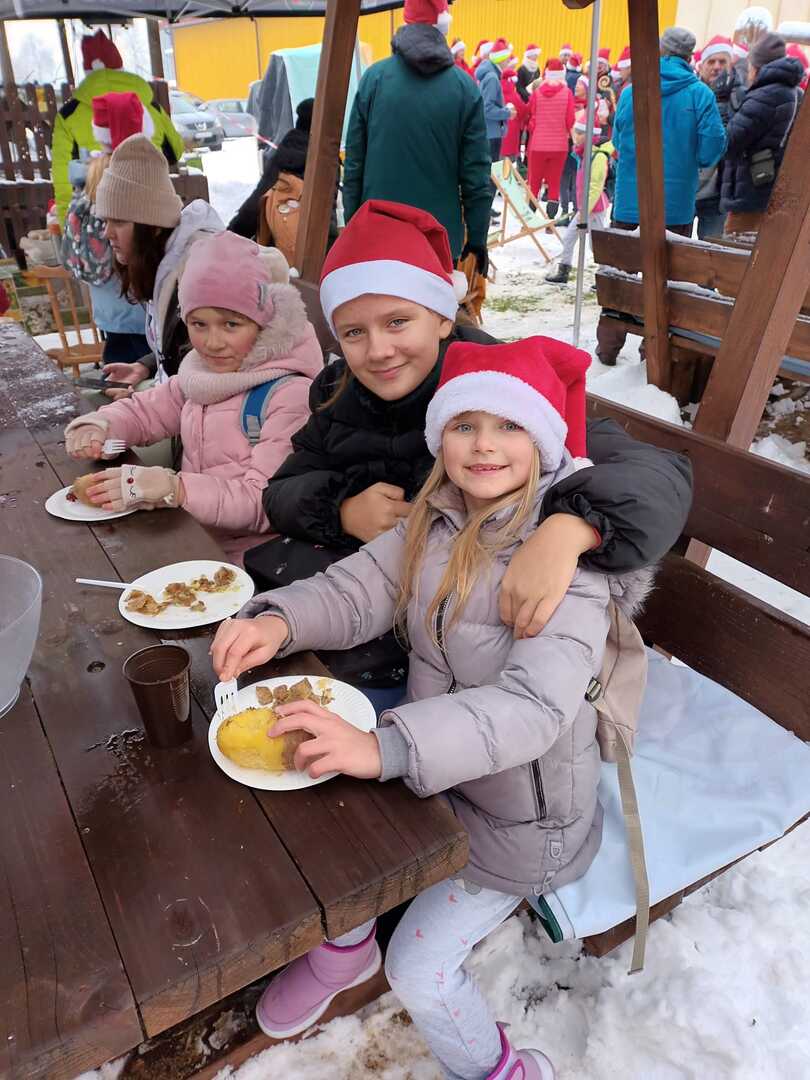 W sobotę 2 grudnia w Obliwicach (gm. Nowa Wieś Lęborska) odbyła się 11 edycja Mikołajkowego Nordic Walking. Z okazji Światowego Dnia Bez Rywalizacji turyści z naszej szkoły (51 osób) chętnie wzięli udział w marszu na dystansie 8km, ze startem i metą w enklawie ekologiczno - historycznej w Obliwicach. Po drodze zatrzymaliśmy się w Janisławcu, gdzie czekało na nas gorące kakao z mleka prosto od krów i cukierki "krówki". Dalej ruszyliśmy do Garczegorza, a stamtąd do mety w Obliwicach, gdzie zorganizowano biesiadę i świąteczny kiermasz. Każdy z uczestników otrzymał od organizatorów czapkę Mikołaja, drobne upominki oraz tytuł "Mikołaj Nordick Walking 2023". Na mecie nie obyło się bez gorącego posiłku, w postaci kiełbasek z ogniska, gorących ziemniaków z kotła, kanapek z pasztetem, śledzi zrobionym przez gospodynie i wiele innych smakołyków. To był udany rajd.