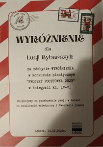 PROJEKT POCZTÓWKA 2023 Uczennica Łucja Rybarczyk (kl. IVa) otrzymała wyróżnienie w konkursie plastycznym "PROJEKT POCZTÓWKA 2023" w kategorii kl. IV-VI. Gratulujemy! Galeria zdjęć Powiązane wiadomości Opowieść wigilijna Czas radości, magii i życzliwości Laureat konkursu plastycznego PROJEKT POCZTÓWKA 2023 Obwody elektryczne SŁYCHAĆ JUŻ SANIE Z DZWONECZKAMI Drukuj Udostępnij Data dodania: 19.12.2023 Wyświetlono: 133 Aktualności