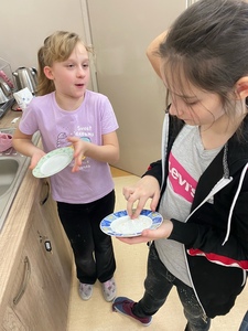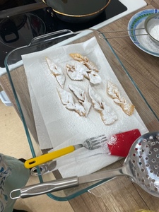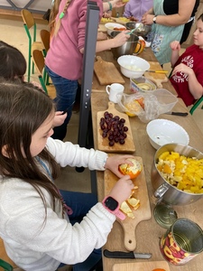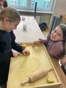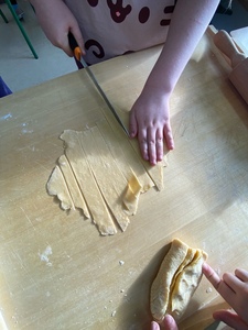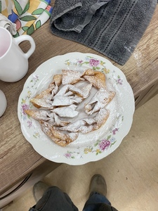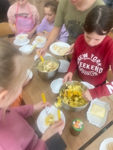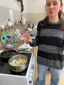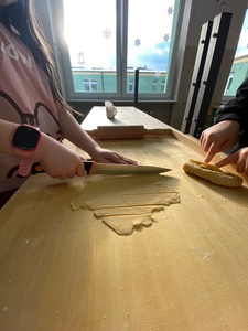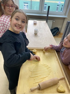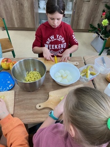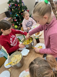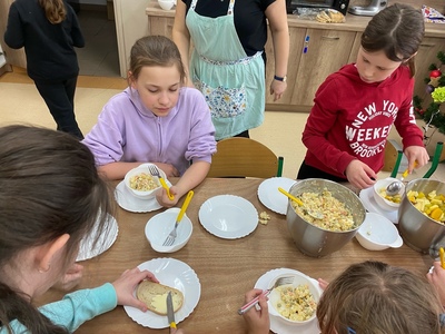 Za nami już trzy spotkania na zajęciach kulinarnych w nowym roku 2024. Na pierwszym spotkaniu robiliśmy naleśniki z różnym nadzieniem. Były np. z marmoladą, czekoladą, bitą śmietaną, a nawet tzw. krokiety. Na kolejnych zajęciach wykonaliśmy sałatkę owocową i sałatkę jarzynową. W ostatni piątek na zajęciach podjęliśmy próbę wykonania faworków. Udały się, co można zobaczyć w relacji foto. Pracy sporo, sprzątania jeszcze więcej, ale degustacja wyżej wymienionych dań wynagradza wszystkie trudy.