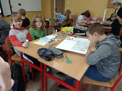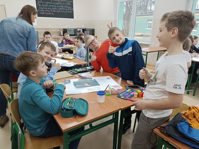 Uczniowie klas czwartych z okazji Święta Patrona Szkoły obejrzeli krótkie filmy obrazujące postać wybitnego uczonego - Mikołaja Kopernika, rozwiązali quizy i wykonali cudowne prace plastyczne "Mikołaj Kopernik - człowiek, który poruszył Ziemię".