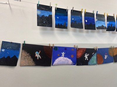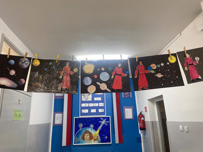 Uczniowie klas I i II SPnr8 już w czwartek rozpoczęli obchody Dnia Patrona Szkoły - Mikołaja Kopernika, od wykonania prac plastycznych przedstawiających wizerunek Patrona i kosmos. Prace zostały wyeksponowane na holu szkoły w budynku”B”. Natomiast w piątek udali się do kina.