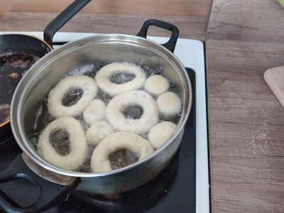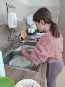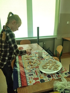 Na jednych z zajęć na zakończenie karnawału zmierzyliśmy się z wykonaniem donatów - wyszły przepyszne. Żeby nie było tylko na słodko, to zrobiliśmy również hamburgery, które smakowały super.
