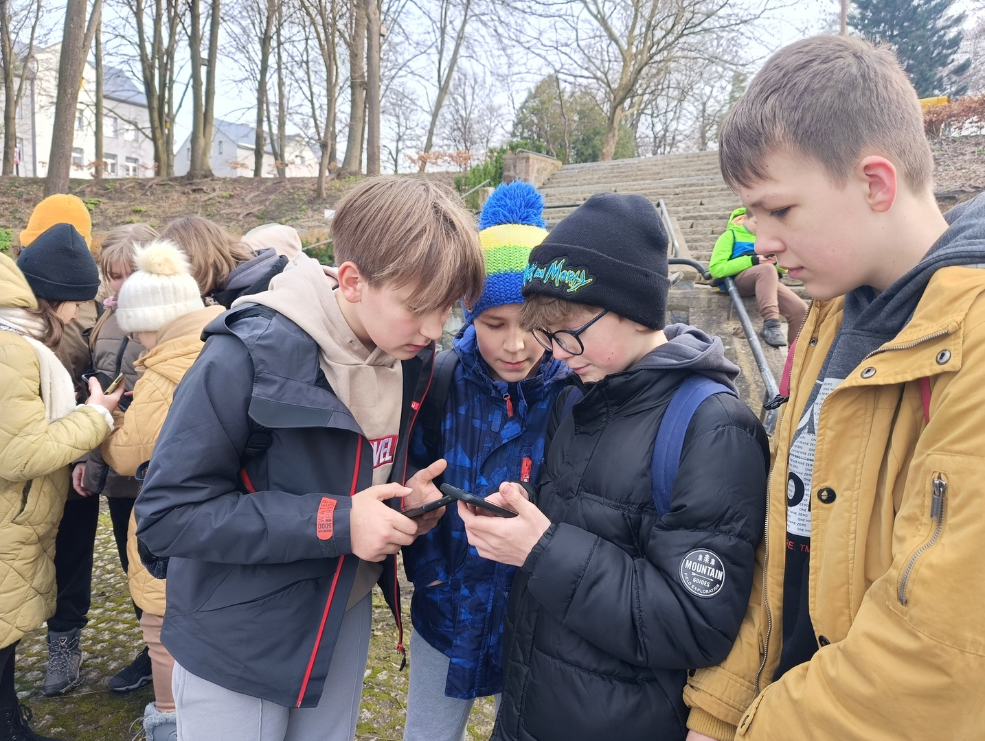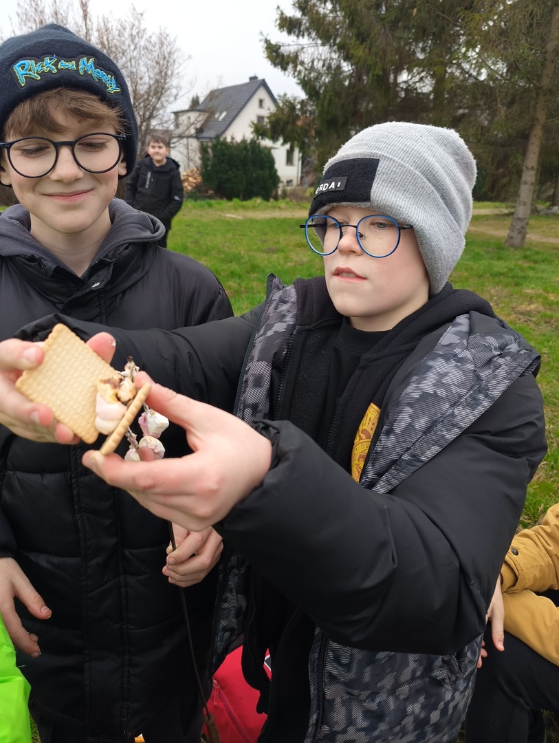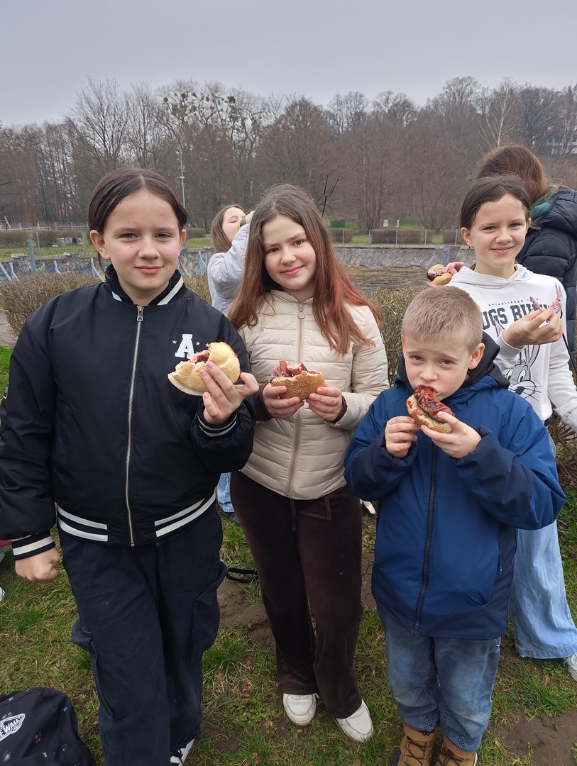 Pierwszy dzień wiosny klasy piąte witały w Parku Chrobrego, poszukując punktów i rozwiązując zagadki podczas gry terenowej "Lęborskie Czarki".