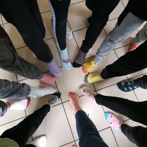 W Światowy Dzień Osób z Zespołem Downa uczniowie naszej szkoły wykazali się otwartością oraz poczuciem wrażliwości wobec osób z różnymi rodzajami niepełnosprawności, zakładając tego dnia kolorowe skarpetki (nie do pary).