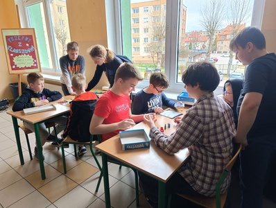 W dniu dzisiejszym SU przygotował swoim kolegom i koleżankom "PRZERWY Z PLANSZÓWKĄ", czyli rozgrywki planszówek na przerwach. W dniu "bez telefonu" stanowiska rozstawione na dwóch piętrach cieszyły się dużym zainteresowaniem. Jest popyt, więc powtórzymy akcję.