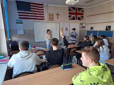Dnia 27.03 odbyła się seria lekcji języka angielskiego przygotowanych przez chętnych uczniów klas 5a, 6d oraz 7e. Uczniowie zaprezentowali grupom zwyczaje związane z nadchodzącym świętem Wielkanocy w krajach anglojęzycznych. Następnie dzieci wykonywały różnorodne zadania w postaci kart pracy. Osoby wykazujące się największym zaangażowaniem otrzymały bardzo dobre oceny z pracy na lekcji. Dzieci chętnie pracowały zainteresowane niespotykaną lekcją prowadzoną przez ich kolegów z klasy. HAPPY EASTER!
