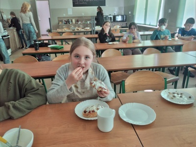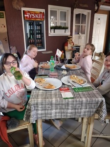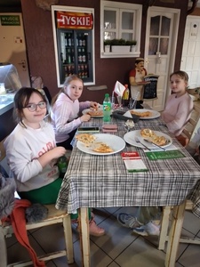 W marcu odbyły się ostatnie zajęcia kulinarne, które były możliwe między innymi dzięki urządzeniom zakupionym z projektu Laboratorium Przyszłości. Na przedostatnich zajęciach robiliśmy zapiekanki i piekliśmy babeczki czekoladowe. A na ostatnie spotkanie wybraliśmy się do kawiarni i na pizzę oraz do kina. Czas upłynął nam sympatycznie i smacznie - miło było dla odmiany zajadać dania przygotowane przez kogoś innego. Zajęcia podobały się dzieciom-wychodziły z nich bogate o nowe umiejętności i syte po degustacji zrobionych dań. Dziękuję wszystkim rodzicom za współpracę i zaangażowanie.