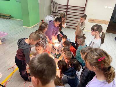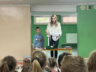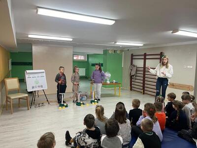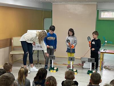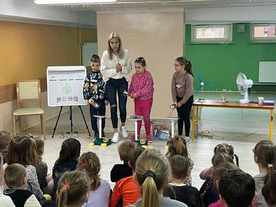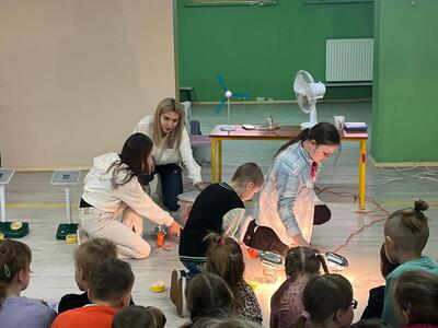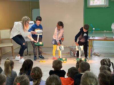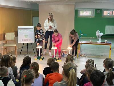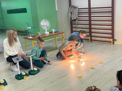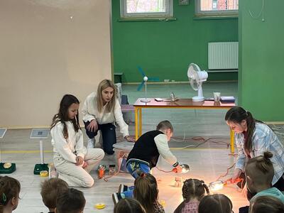Dnia 17 kwietnia 2024 r. uczniowie młodszych klas wzięli udział w warsztatach edukacyjnych "Energia odnawialna" przygotowanych i poprowadzonych przez Agencję Szkolno-Przedszkolną LUPUS. Podczas warsztatów dzieci poznały różne rodzaje i znaczenie odnawialnych i nieodnawialnych źródeł energii, mogły samodzielnie eksperymentować z użyciem światła i wiatru. Uczniowie obserwowali przemianę energii słonecznej w ruch wiatraka, sygnał dźwiękowy; miały okazję pobawić się samochodzikami napędzanymi panelami fotowoltaicznymi. Były to bardzo wartościowe i pouczające warsztaty.