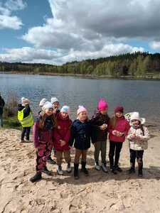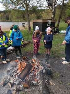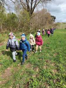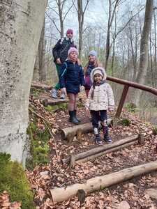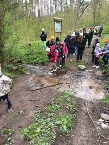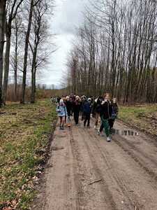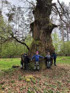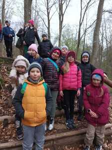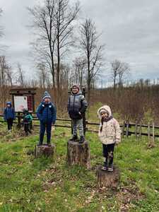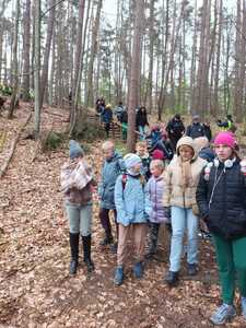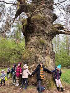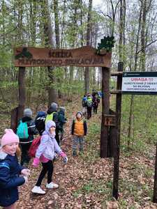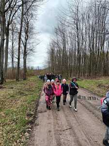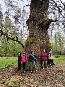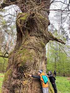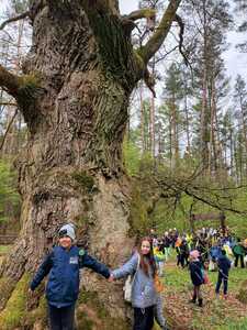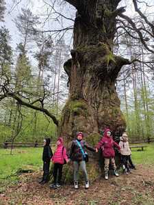 20 kwietnia 2024r. odbył się kolejny rajd pieszy w ramach koła turystycznego. Tym razem wybraliśmy się do Małoszyc, Krępkowic i nad Jezioro Brody. Przeszliśmy 11km ścieżką przyrodniczo - edukacyjną "Dąb Świętopełk". Warto wspomnieć, że za czasów namiestnika pomorskiego i księcia gdańskiego Świętopełka II zakiełkował w lasach kasztelanii białogardzkiej dąb. Nikt nie przypuszczał, że to niepozorne wtedy jeszcze drzewo, dziś atrakcja przyrodnicza okolicy, przetrwa pomorską zawieruchę dziejową i będzie cieszyć ludzkie oko nawet w XXI wieku! Na pamiątkę lokalnego władcy z czasów szacowanych początków drzewa dąb otrzymał imię Świętopełk. Wiek dębu szacuje się (w zależności od źródła) na ok. 630-700 lat. Obecnie Świętopełk mieści się w pierwszej dziesiątce najstarszych polskich drzew. Ze swymi 22 metrami wysokości i obwodem w pierśnicy 770 cm. Ścieżka prowadziła przez urozmaicony krajobraz buczyny pomorskiej z widokami wijącej się w dole rzeki. Oznakowana trasa przejścia z licznymi tablicami informacyjnymi pozwalała bliżej poznać miejsca, w których byliśmy. Na mecie naszej wędrówki, nad Jeziorem Brody odbyło się podsumowanie rajdu - ognisko, przy którym chętnie upiekliśmy kiełbaski. Każdy uczestnik otrzymał okolicznościowy znaczek.