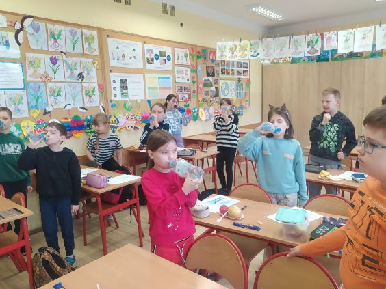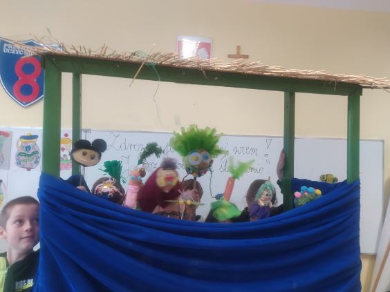 Uczniowie klas III a, III d oraz świetlicy (uczniowie klas I i II) uczestniczyli w ogólnopolskim projekcie edukacyjnym "Zdrowo jem, więcej wiem”. Dzieci w ciekawy sposób uczyły się zasad zdrowego odżywiania. Smacznie - zdrowo - kolorowo było podczas lekcji o owocach i warzywach. Teatrzyk warzyw i owoców był pouczającym i ciekawym doświadczeniem. Podczas lekcji: Woda na zdrowie! dzieci zdobyły wiedzę o roli wody w życiu człowieka. Odbył się Konkurs na postać Wodolubka - teraz już nikt nie zapomni o częstym piciu wody. Uczniowie dzielili się zdobytą wiedzą, propagując zdrowy styl życia. To był pracowicie i owocnie spędzony czas. Również dla wychowawców klas: Pani Teresy Licau i Pani Magdaleny Sikory oraz Pani Klaudii Jóźwiak-Hachaj, które zorganizowały i przeprowadziły zajęcia uczniom. Zapraszamy do fotorelacji!