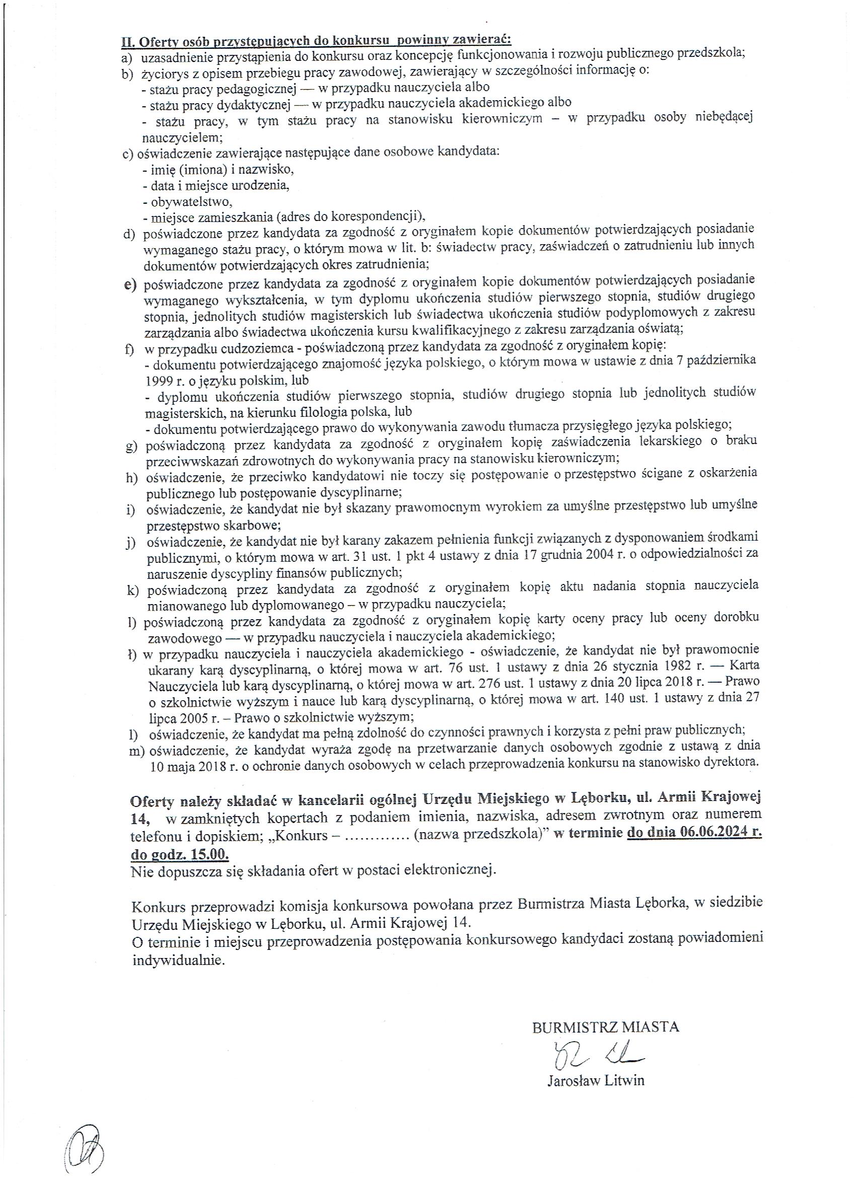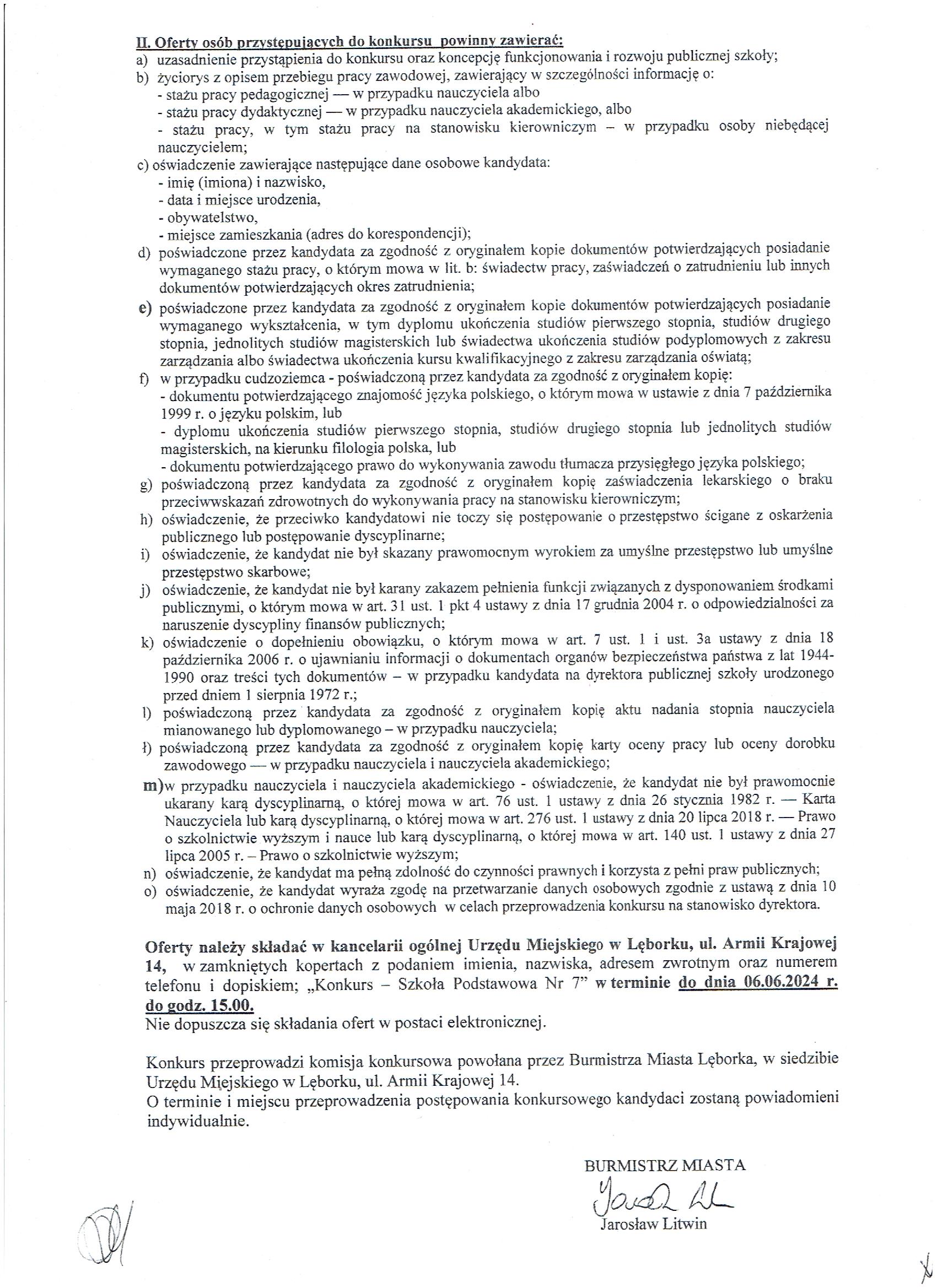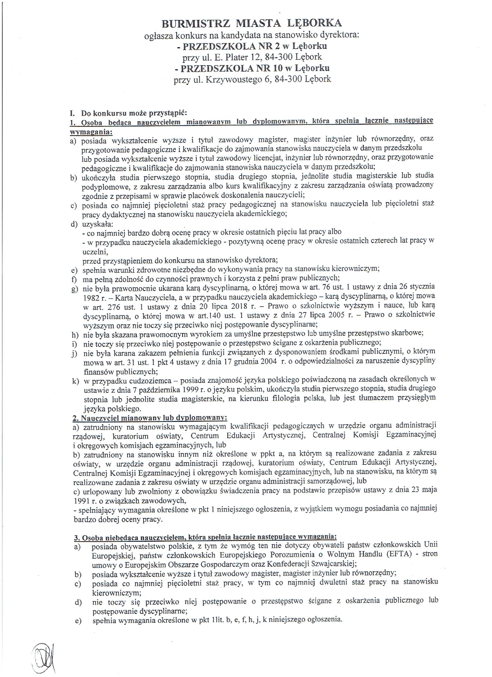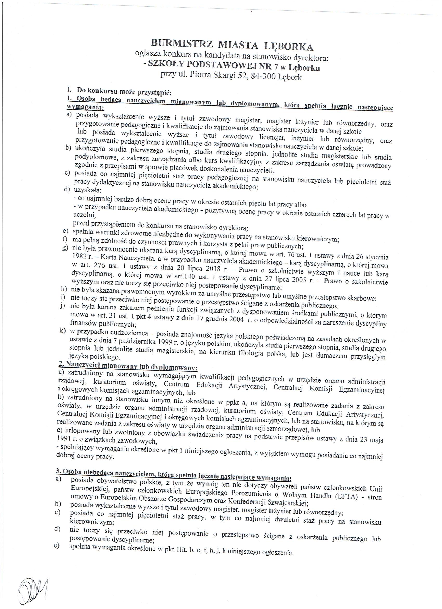 Burmistrz Miasta Lęborka ogłasza konkursy na stanowiska dyrektorów niektórych placówek oświatowych.