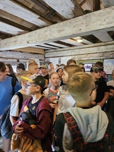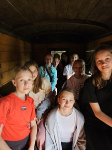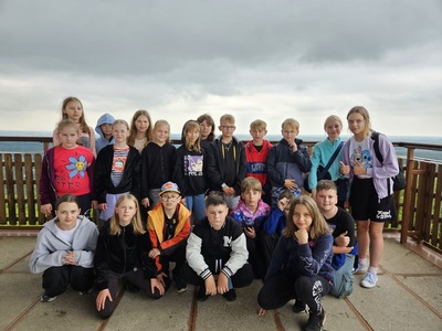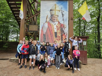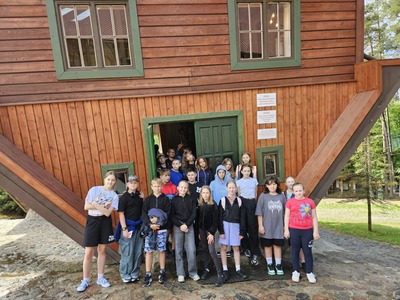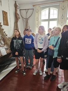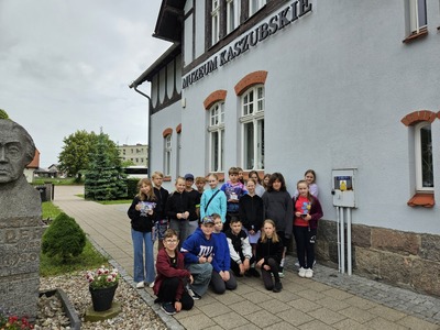 Uczniowie kl. IVa oraz VIb wybrali się na wiosenną wycieczkę, by poznać bliżej region Kaszub. Odwiedzili Muzeum Kaszubskie w Kartuzach, gdzie obejrzeli eksponaty związane z literaturą, językiem, kulturą oraz dziejami i tradycjami regionalnymi. W Szymbarku zobaczyli Stół Noblisty dla 230 osób, Dom Trapera Kaszubskiego z Kanady jako symbol 150-lecia osadnictwa Kaszubów w Kanadzie, Dom Powstańca Polskiego z tureckiego Adampola z 1842 roku, Pomnik Gryfa Pomorskiego, Kościółek św. Rafała Kalinowskiego, Chatę Kaszubską z zachowanymi oryginalnymi elementami, największy fortepian świata, najdłuższą deskę świata, Dom Sybiraka z łagrem, Dom Harcerza, a w zrekonstruowanym bunkrze Gryfa Pomorskiego mogli przeżyć imitację nalotu bombowego. W domu do góry nogami poczuli niezwykłe wrażenia w związku z zaburzeniami błędnika. Spore zainteresowanie wzbudził też Kaszubski Świat Bajek. Wszyscy uczestnicy wycieczki poradzili sobie i bez problemu dotarli na szczyt Wieżycy, a następnie pokonali 182 stopnie i weszli na wieżę widokową, by podziwiać piękne Wzgórza Szymbarskie. Ostatnim punktem wyprawy było Muzem Kolejnictwa w Kościerzynie, gdzie uczniowie zobaczyli wspaniałe pojazdy szynowe, oglądali ruchome makiety oraz pomieszczenia warsztatowe. Nie zabrakło też przejażdżki drezyną z napędem ręcznym.