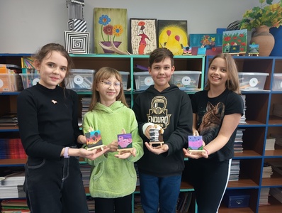 Koło plastyczne 2023/2024 W tym roku swoje zainteresowania plastyczne spora grupa uczniów naszej szkoły rozwijała w artystyczne czwartki. Oto jakie powstawały dzieła na tych zajęciach. Galeria zdjęć Powiązane wiadomości X edycja ogólnopolskiego konkursu matematycznego... Turniej Wiedzy o Odnawialnych Źródłach Energii Konkurs plastyczny - finaliści z SP8 Koło plastyczne 2023/2024 DZIEŃ MAMY W ŚWIETLICY SZKOLNEJ SP 8 BIERZE UDZIAŁ W OGÓLNOPOLSKIM EKOLOGICZNYM... Drukuj Udostępnij Data dodania: 11.06.2024 Wyświetlono: 162 Aktualności