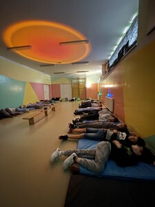 W trzecim dniu TYGODNIA SZCZEŚCIA W NASZEJ SZKOLE dzieci mogły skorzystać z wyciemnionej sali wyciszenia, odpocząć i zrelaksować się wśród delikatnych dźwięków muzyki. Był to DZIEŃ UWAŻNOŚCI. Chcieliśmy zwrócić uwagę na zadbanie o swój dobrostan, skupienie uwagi na sobie i swoich potrzebach.
