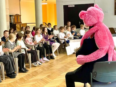 Październik rozpoczęliśmy od wizyty w Słupskiej Sinfonia Baltica na pierwszej lekcji z cyklu „Lekcja z Filharmonią”. Czwarte klasy poznały podstawowe instrumenty dęte zarówno w teorii, jak i w praktyce. Wiadomości były wplecione w koncert muzyki klasycznej, jak i tej znanej z bajek i filmów. Jedną ze znanych postaci bajkowych była Różowa Pantera, której główny motyw był bardzo znajomy dzieciom. Byli też ochotnicy, którzy próbowali swoich sił, dmuchając w instrumenty, co okazało się nie takie proste. Z pewnością skorzystamy z kolejnych lekcji.