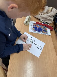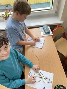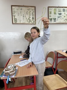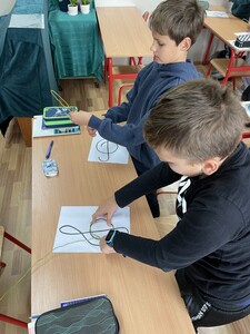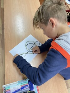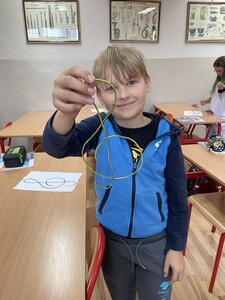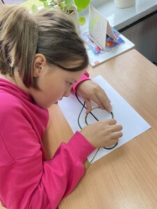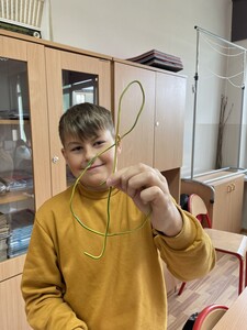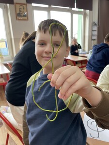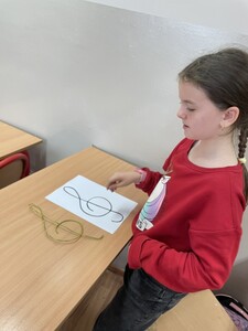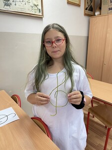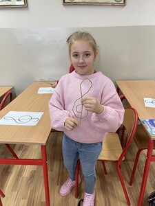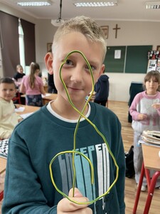 Dzisiejsze zajęcia muzyki w czwartej klasie były nietypowe. Poznaliśmy rolę klucza wiolinowego i przygotowaliśmy się do nauki wpisywania go na pięciolinii, co wcale nie jest takie proste. Zrobiliśmy to w oryginalny sposób, a mianowicie wyginaliśmy go z drutu. Potem powstawały inne ciekawe druciane dzieła.