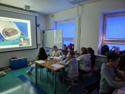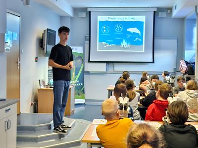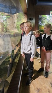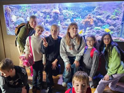 Wycieczka uczniów klas 5a oraz 5c do Akwarium Gdyńskiego miała charakter edukacyjny. Poza zwiedzeniem ośmiu sal ekspozycyjnych i poznaniu ponad 200 gatunków zwierząt związanych ze środowiskiem wodnym, uczniowie wzięli udział w dwóch warsztatach: "Poznajemy rekiny" oraz "Fauna i flora Bałtyku".