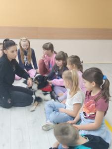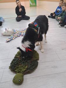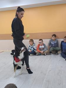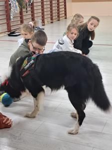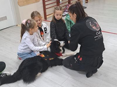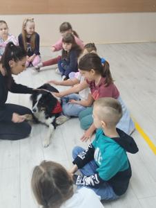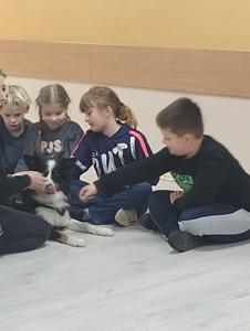 Uczniowie kl.2 A i 2 B uczestniczyli we wspaniałych i wartościowych warsztatach z psem rasy border collie, który wabi się Chilli. Dzieci dowiedziały się, jak prawidłowo bawić się z psem, głaskać go, karmić z ręki- czy też, jak prawidłowo z psiaczkiem się przywitać. Każde dziecko miało okazję m.in. podać pieskowi z ręki smakołyk, rzucić piłeczkę, podając komendę "Przynieś" oraz pożegnać się prośbą „Podaj łapę”. To był cudownie spędzony czas z czworonożnym przyjacielem. Serdecznie dziękujemy :)