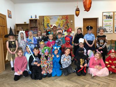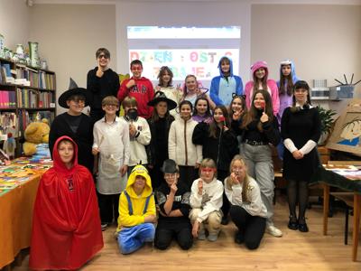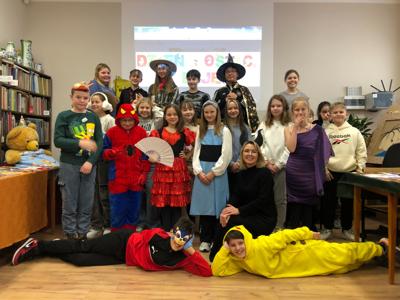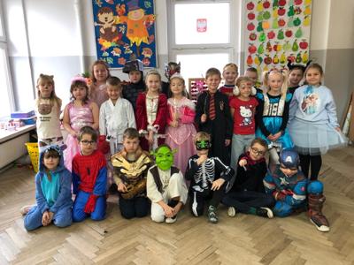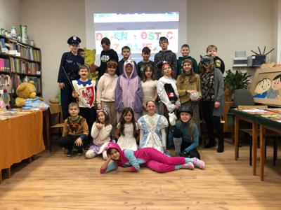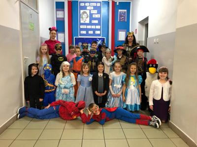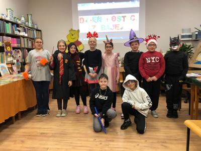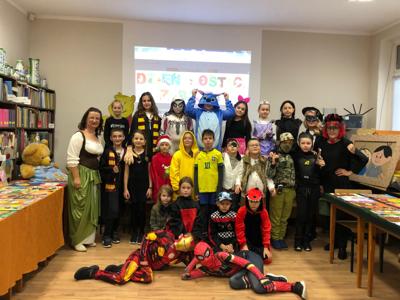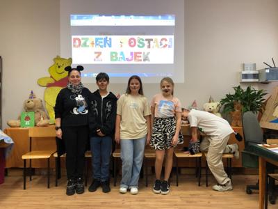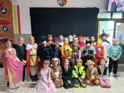 Nasza szkoła tego dnia również zamieniła się w magiczny świat bajek. Na holu można było spotkać księżniczki, misie, Czerwone Kapturki, syrenki, Harrego Pottera, kociaczki... i wiele innych. Nasi bohaterowie chętnie się fotografowali w szkolnej bibliotece, gdzie czekały na nie inicjatorki wydarzenia - panie bibliotekarki. Wszystkie przybyłe klasy wykazały się dużą pomysłowością. Na szczególne wyróżnienie zasłużyły klasy: I a (wychowawca - p. M.Pszczólińska), I d (wychowawca - p. T.Licau), II a (wychowawca - p. E.Sadkowska), II b (wychowawca- p. J.Fudala) oraz III c (wychowawca- p. Mirosława Jóźwiak), które były przebrane w 100 % :) Otrzymały one w podziękowaniu tuby z cukierkami :)