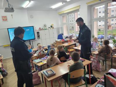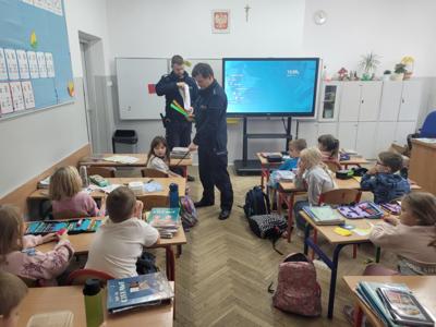 Uczniowie klas pierwszych i drugich mieli wyjątkową lekcję o bezpieczeństwie na drodze. Naszą szkołę odwiedzili funkcjonariusze Policji 👮♀️👮♂️.W trakcie spotkania najmłodsi dowiedzieli się, jak prawidłowo przechodzić przez jezdnię, dlaczego noszenie odblasków jest takie ważne, oraz jak zadbać o swoje bezpieczeństwo podczas poruszania się po zmroku. 🌙✨