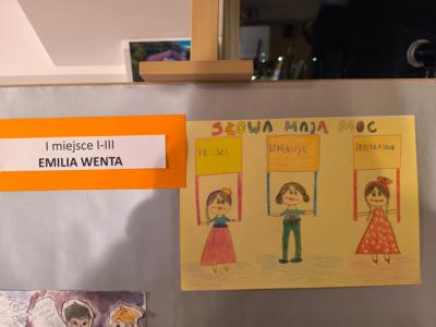 Konkursy - kl. IIIa Julia Staszewska otrzymała wyróżnienie w Międzynarodowym Konkursie Plastycznym "Święty Jan Paweł II w oczach dziecka".Emilia Wenta - I miejsce w Powiatowym Konkursie Plastycznym "Słowa mają moc". Galeria zdjęć Powiązane wiadomości Warsztaty Warsztaty 🎉 Wyniki IV Powiatowego Konkursu Fotograficznego... Konkursy - kl. IIIa Mikołajki Mikołajki w klasie 1b Drukuj Udostępnij Data dodania: 06.12.2024 Wyświetlono: 104 Aktualności