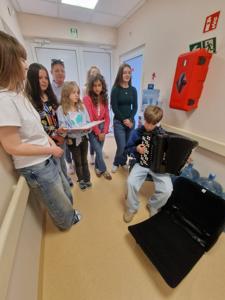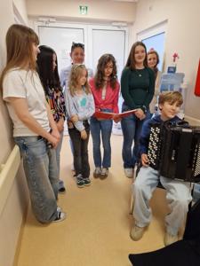 Nasi wspaniali wolontariusze z SP8 odwiedzili Seniorów w Zakładzie Pielęgnacyjno-Opiekuńczym w lęborskim szpitalu. Swoim śpiewem i grą na akordeonie wnieśli odrobinę radości i ciepła. Drobne upominki sprawiły uśmiech na twarzach podopiecznych.