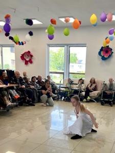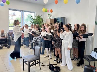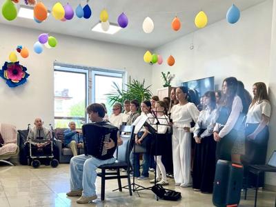 W środę nasz szkolny chór wsparty naszymi zdolnymi tancerzami i Fabianem akordeonistą już po raz trzeci sprawił, że mieszkańcy Domu Seniora Magnolia mieli zdecydowanie lepszy dzień. Było dużo oklasków i ciepłych, wzruszających słów od słuchaczy. To upewniło nas w przekonaniu, że warto odwiedzać naszych starszych przyjaciół, co też będzie miało kontynuację w następnym roku.