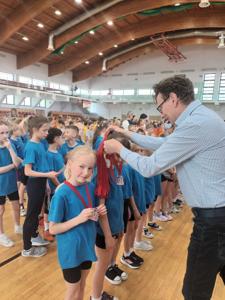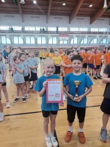 22 maja 2025r. odbył się Miejski Konkurs Sportowy dla Szkół Podstawowych "Kto z nas lepiej I prędzej". Naszą szkołę reprezentowało 36 uczniów z klas I - III. Za swój udział otrzymali medale oraz puchar i dyplom dla szkoły.