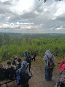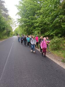 24 maja 2025r. kolejny raz wybraliśmy się w okolice Pogorzeli , a przede wszystkim do punktu widokowego Stolniczka. Z liczącej 142m n.p.m. Stolniczki rozciąga się malowniczy widok na pradolinę rzeki Łeby, w tym drogę Słupsk - Lębork. Stamtąd przeszliśmy 7-km trasę przez las aż do Hispicjum w Pogorzelicach. Przekazaliśmy dla podopiecznych Hospicjum niezbędne środki czystości oraz zebrane wcześniej wśród nauczycieli oraz uczniów naszej szkoły pieniążki. Opiekunowie Hospicjum przygotowali dla nas słodki poczęstunek oraz ognisko, przy którym mogliśmy upiec kiełbaski.