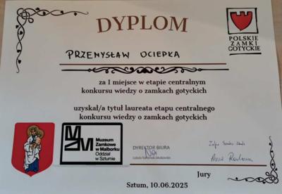 1. miejsce!!! - Konkursu o zamkach gotyckich