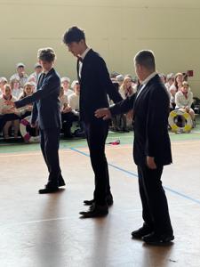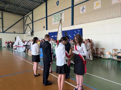 Ważnym momentem wydarzenia było uroczyste przekazanie sztandaru młodszym kolegom – symbolu szkolnych wartości, tradycji i odpowiedzialności.