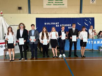 Pożegnaliśmy naszych ósmoklasistów, którzy pod hasłem „Wypływamy na szerokie wody” zakończyli swoją szkolną podróż. 🌊
