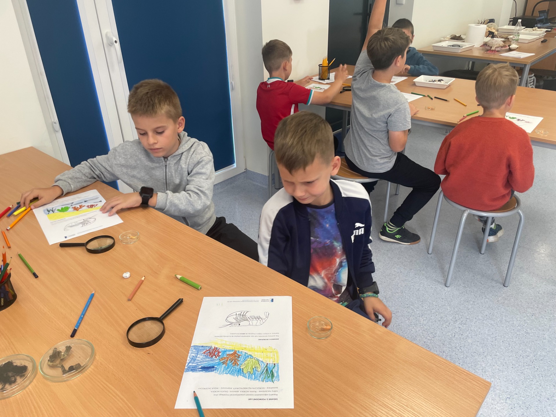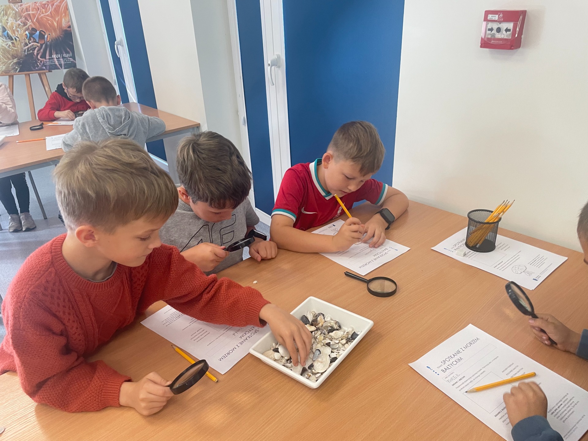 Dzieci uczestniczyły w zajęciach edukacyjnych pt. Spotkanie z Morzem Bałtyckim, podczas których poznawały faunę i florę naszego morza. W trakcie zajęć uczniowie pracowali z kartami pracy oraz korzystali z lup, by dokładnie przyjrzeć się drobnym organizmom.