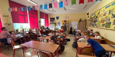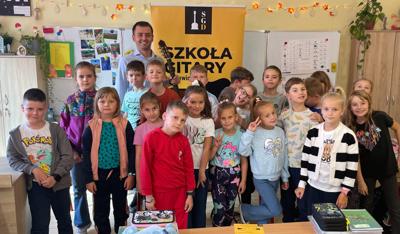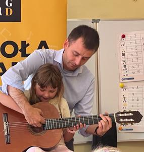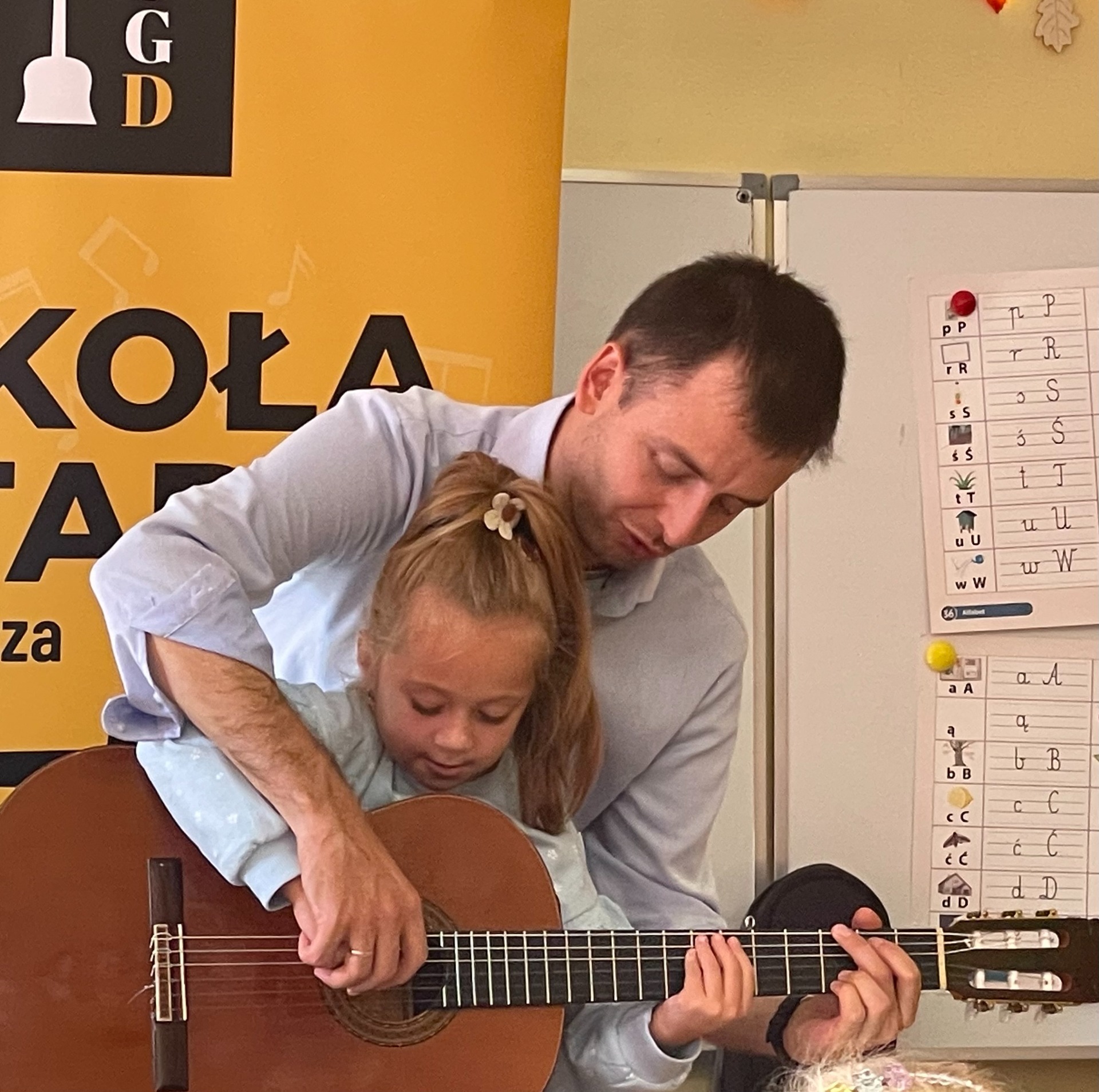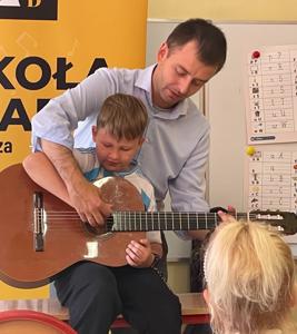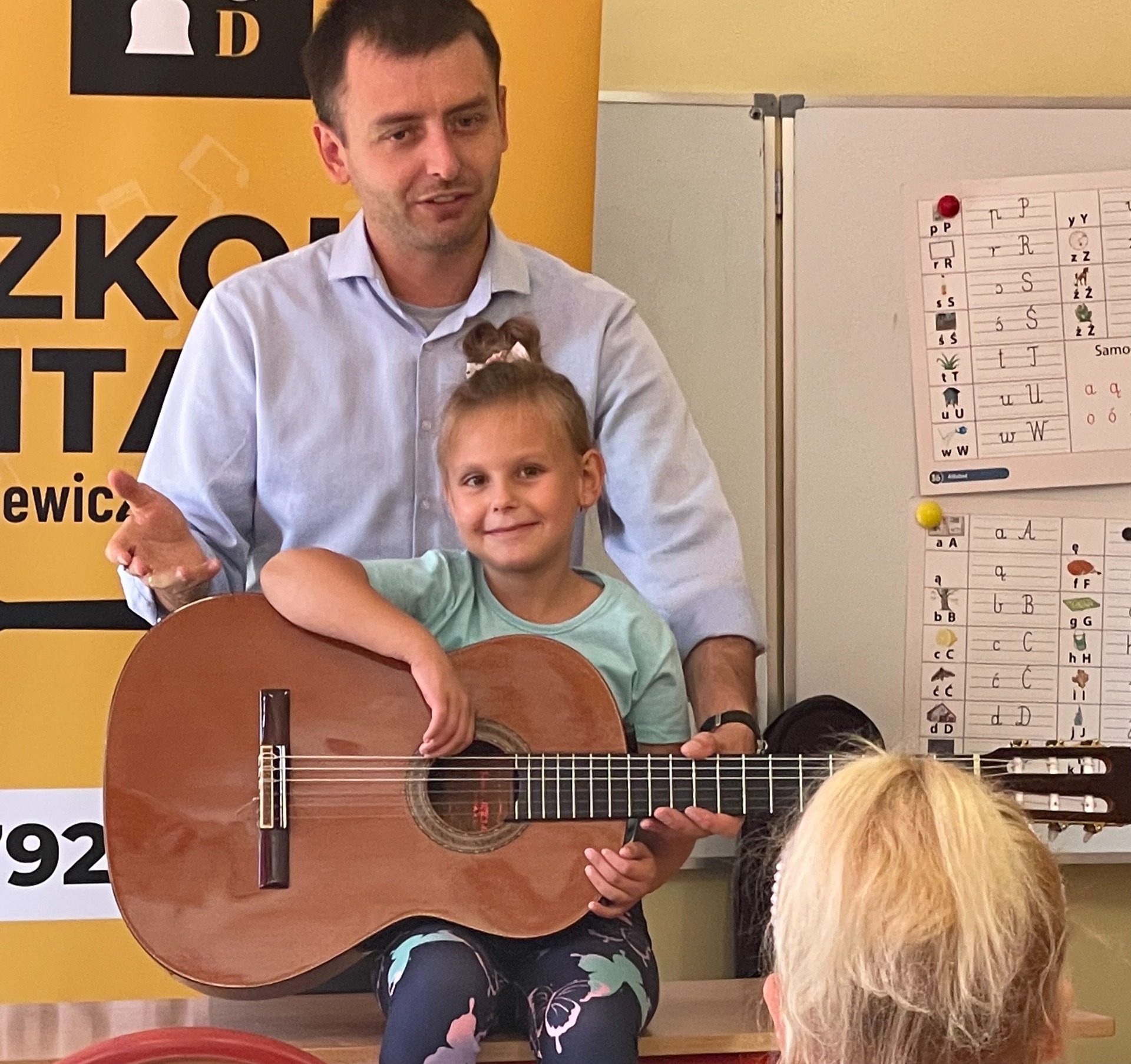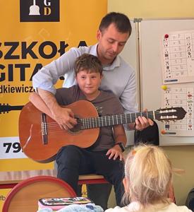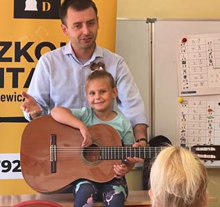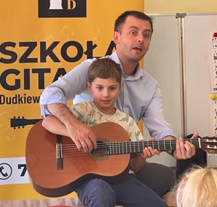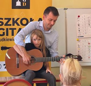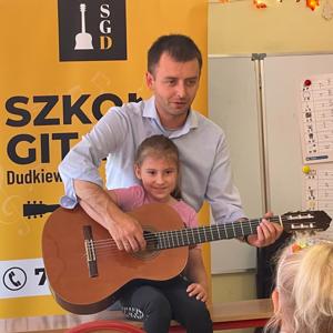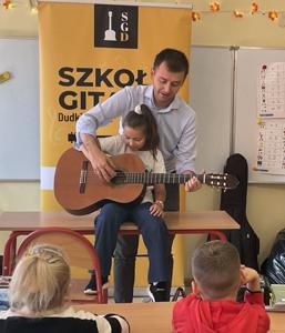 Dzieci z klasy 2b uczestniczyły w niezwykłej lekcji muzyki. Pan Mikołaj Dudkiewicz zaprezentował grę na gitarze. Dzieci miały okazję spróbować swoich sił i przy pomocy muzyka wspólnie zgrać na gitarze. To było bardzo ciekawe doświadczenie.