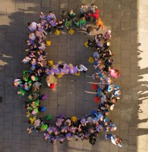 Nast臋pnie wszyscy uczniowie ustawili si臋 na boisku w kszta艂t 偶ywej ósemki.