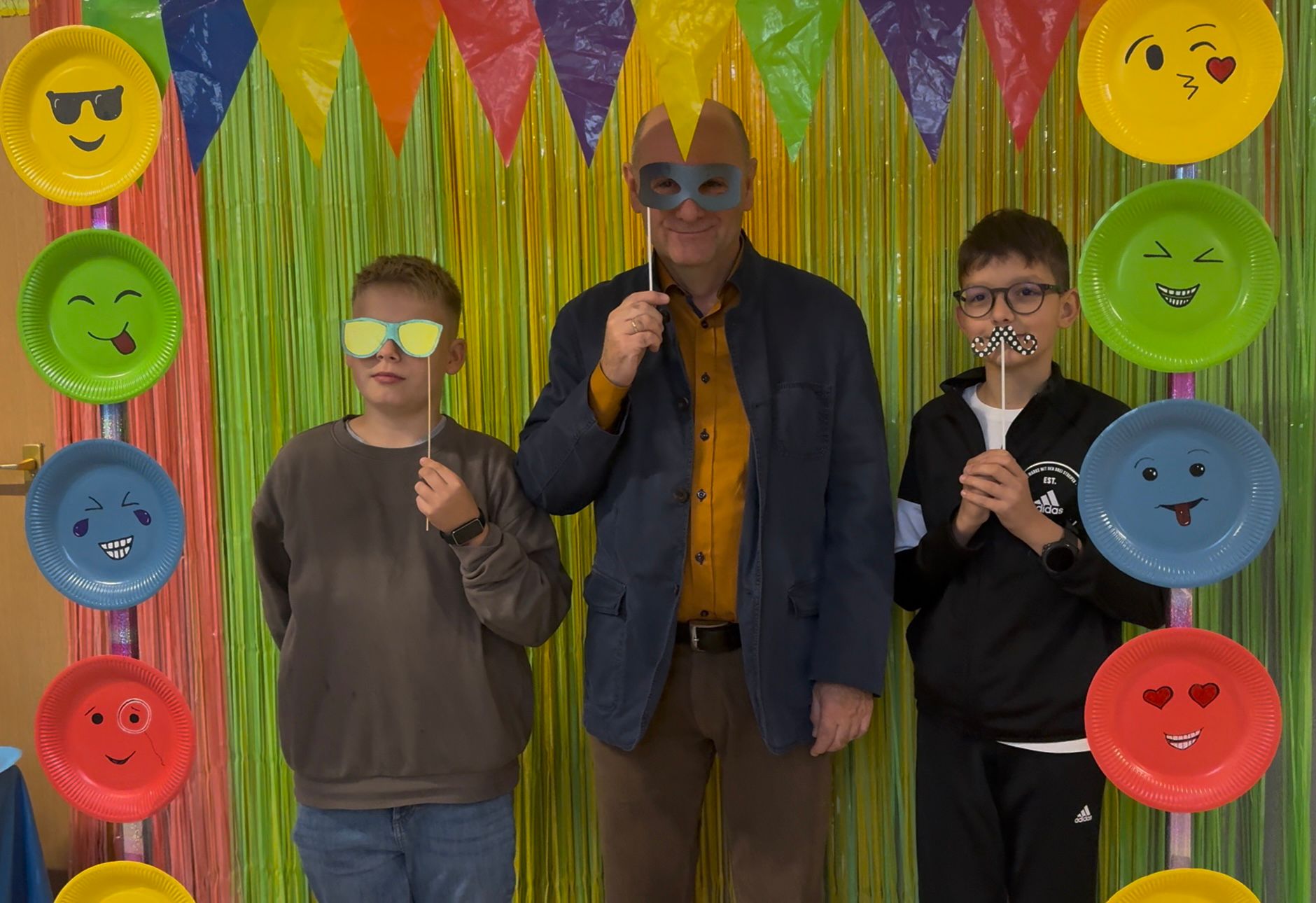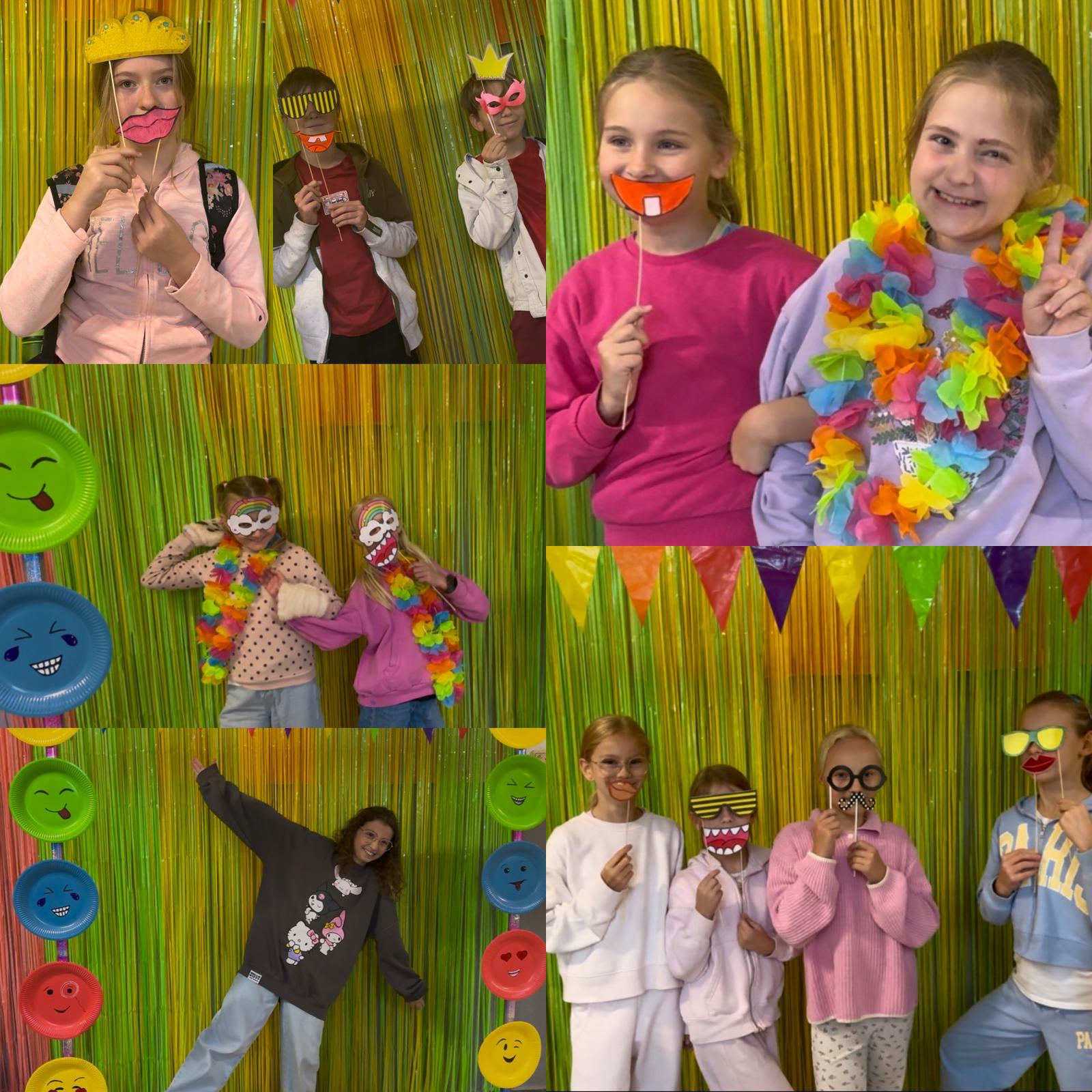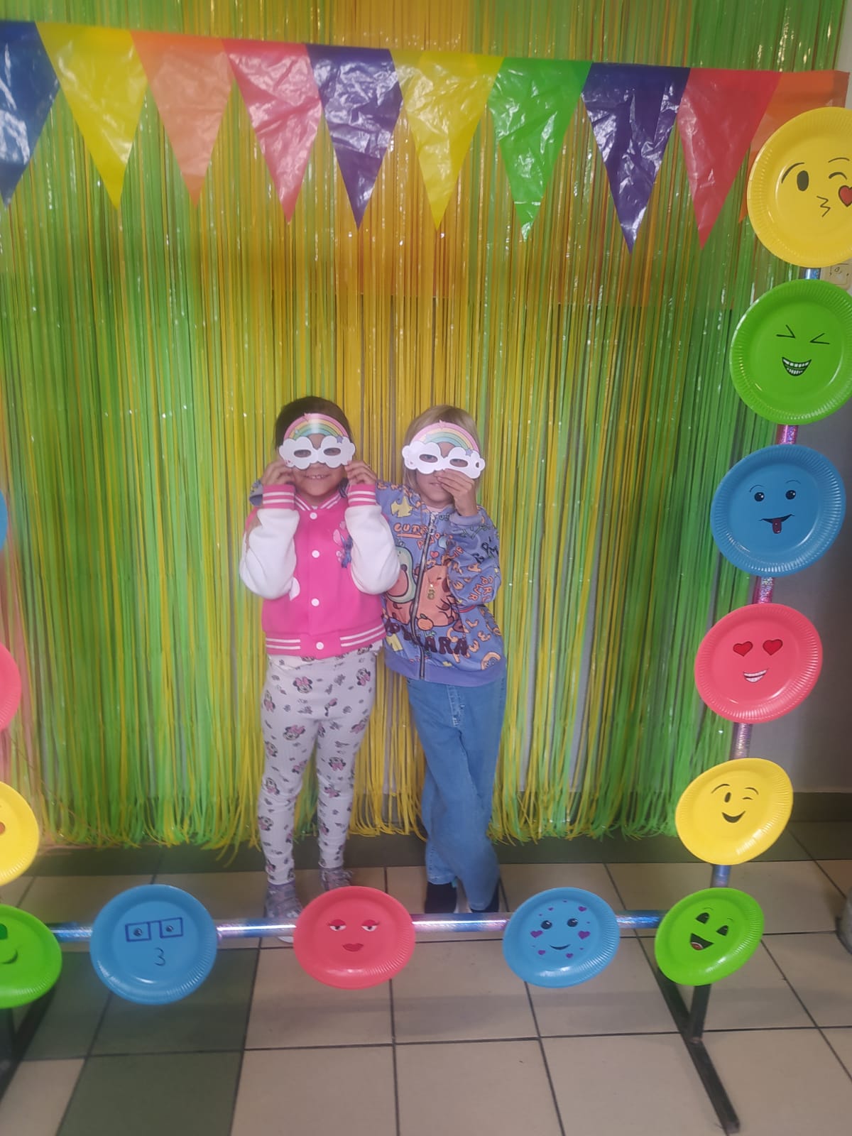 Dodatkową atrakcją była wesoła fotobudka z kolorowymi akcesoriami, w której każdy mógł zrobić sobie pamiątkowe zdjęcie.