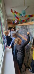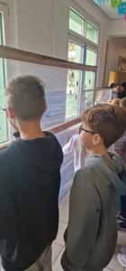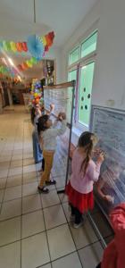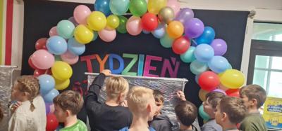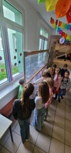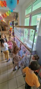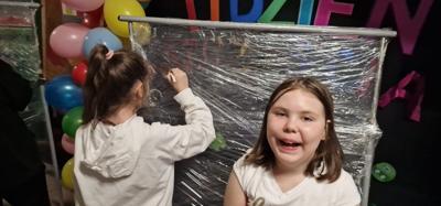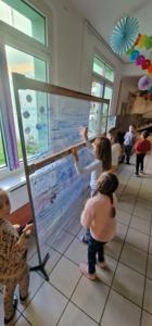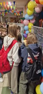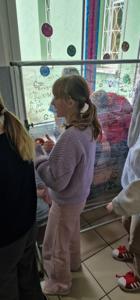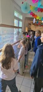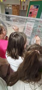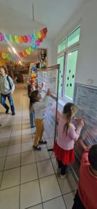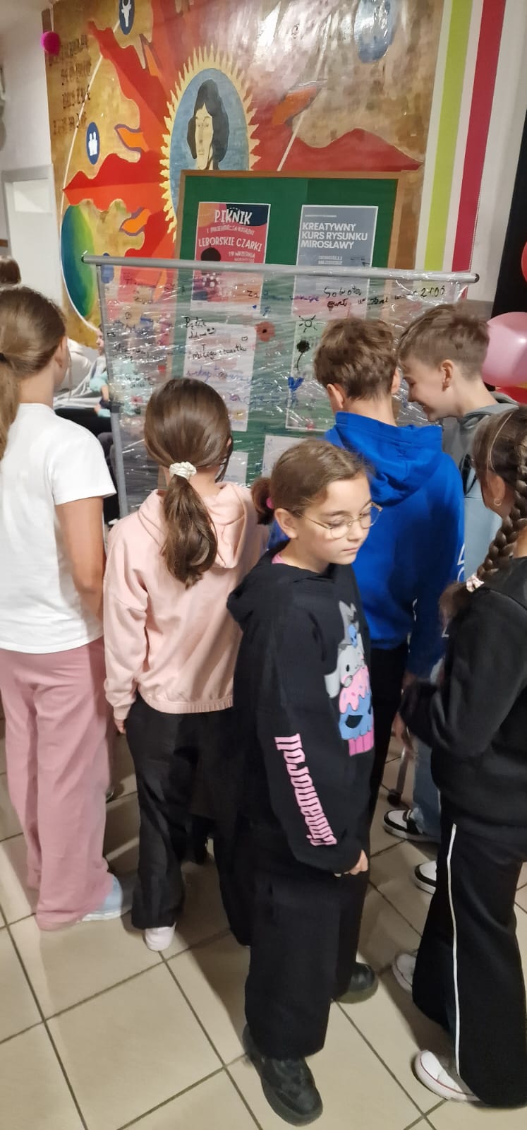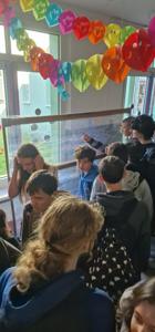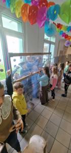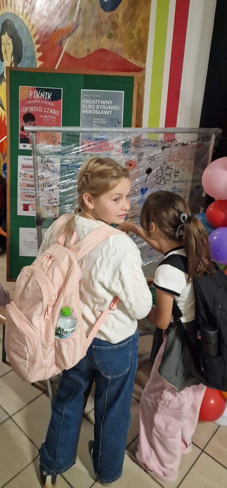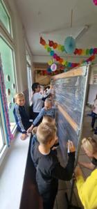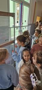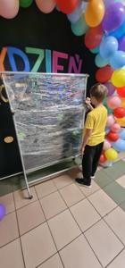 Tego dnia uczniowie zapisywali markerami na rozciągniętej folii stretch swoje pozytywne myśli, miłe słowa i pozdrowienia dla innych.