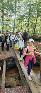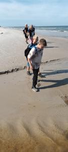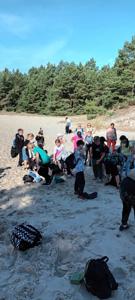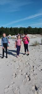 W ramach koła turystycznego odbył się pierwszy w tym roku szkolnym rajd pieszy. Wędrówka (7km) ścieżką przyrodniczą prowadziła przez malownicze tereny Wydmy Lubiatowskiej wznoszącej się na wysokości 35m.n.p.m. Podczas spaceru podziwialiśmy panoramiczne widoki z kilku specjalnie przygotowanych platform widokowych, odkrywaliśmy rozlewiska rzeki Bezimiennej - 4-kilometrowego cieju wodnegododającego uroku okolicy, spacerowaliśmy przez pachnące bory sosnowe oraz brzegiem morza. Zakończenie naszej wędrówki odbyło się w Szklanej Hucie w miłej atmosferze przy ognisku.