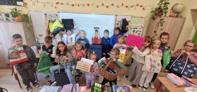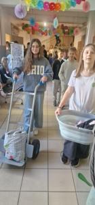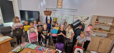 Zamiast tradycyjnych plecaków uczniowie przynieśli swoje przybory w najbardziej pomysłowych „pakunkach” – można było zobaczyć walizki, koszyki, garnki, pudełka, a nawet wózki!