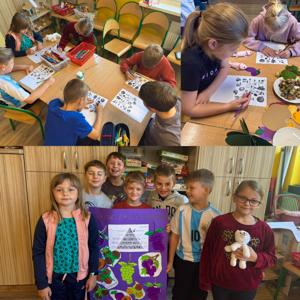 ✏️Pięknie pokolorowaliśmy zwierzaków rysunki, dołączyliśmy się także do zbiórki. 🧩